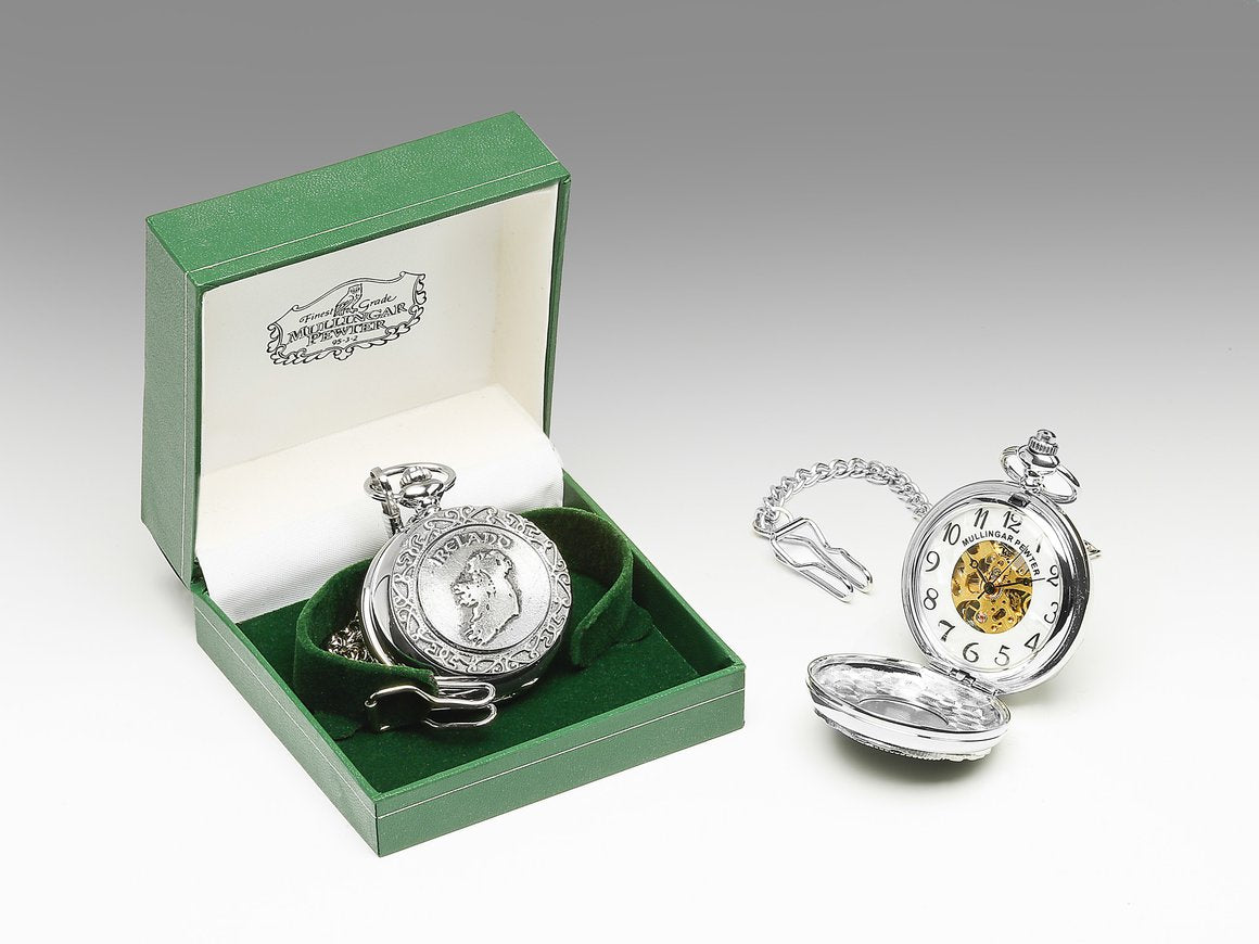 This is a mechanical gents watch designed to capture that early Victorian look as portrayed by the gents of that time. The watch itself is a manual wind-up and the workings can be seen from both the front face and back of the watch. The chain is 12" in length and has a pocket clip on the end designed to slip on to the cuff of a pocket.