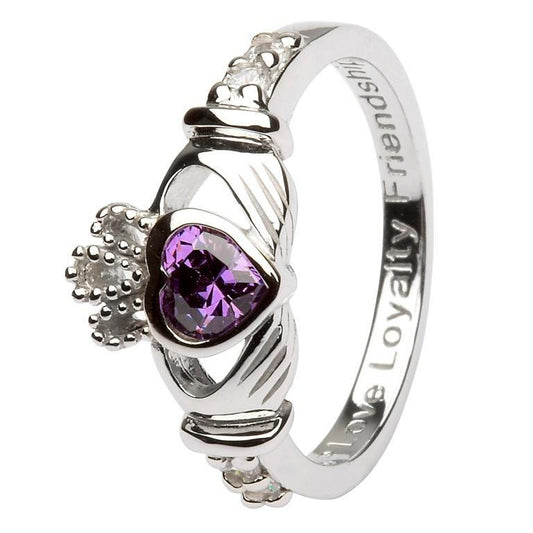 10K Gold Claddagh Ring with Green Agate & CZ Diamonds