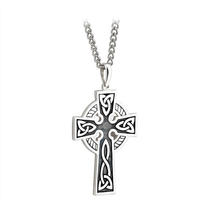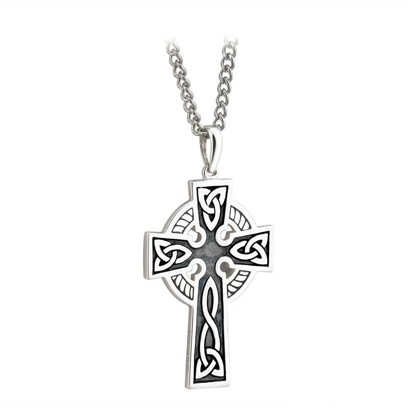 The Cross is a powerful symbol of faith, and this delicate oxidised Trinity pendant is engraved with iconic Celtic knot-work to represent eternal life and endless love. This trinity pendant has been created in sterling silver, and Irish hallmarked in Dublin Castle.