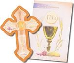 4.5" First Holy Communion Eucharist Cross with Tri Fold Prayer Booklet.