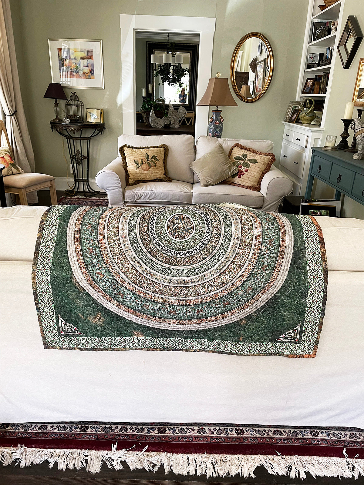 Dress your home with the mythology of the Celts. Handcrafted by experienced quilter extraordinaire and our own Susan Banks, owner of Faith & Begorra. Love and magic in every stitch!