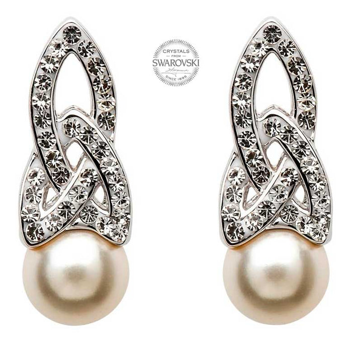 Sterling Silver Trinity Pearl Earrings adorned with Swarovski Crystals.  They are a best seller especially when paired with the matching necklace.  The earrings are designed by Shanore and from Dublin.  The are Hallmarked at the Dublin Castle.